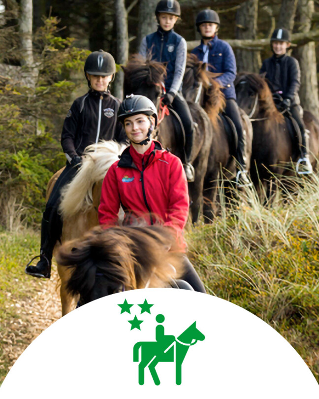 I stalden er I med til at klargøre hestene til turen, herefter tager vi en smuk tur rundt i naturen.